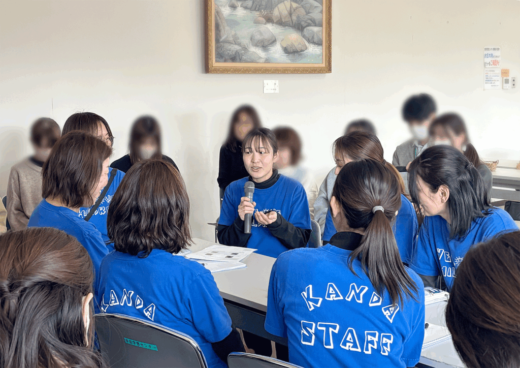 かなりの至近距離でお客様に囲まれた神田保育園の保育者たち。